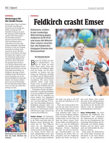 Hohenems verliert in der Landesliga Württemberg gegen Feldkirch 26:29 (9:13) und muss die Meisterfeier vorerst verschieben. Die Feldkircher hingegen fixieren den Klassenerhalt.