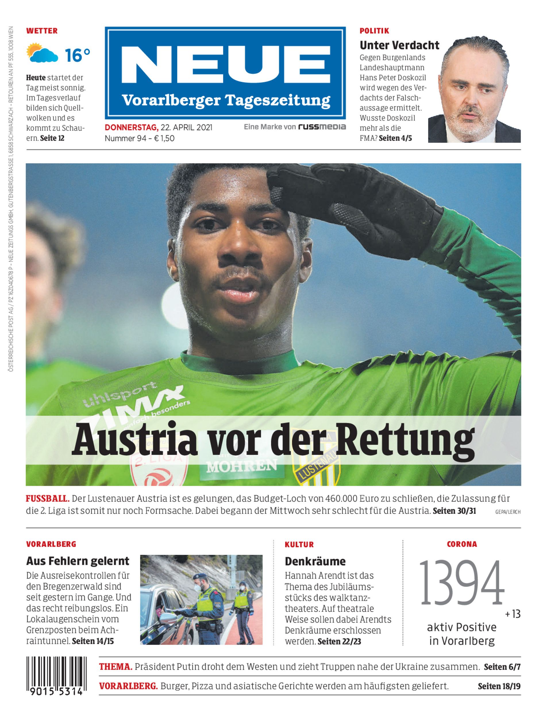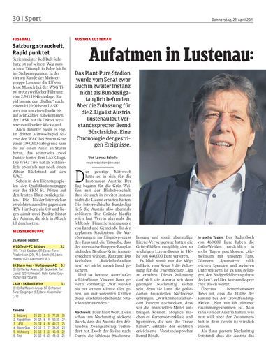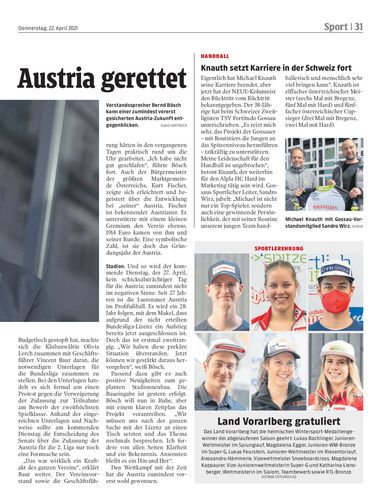Fussball. Der Lustenauer Austria ist es gelungen, das Budget-Loch von 460.000 Euro zu schließen, die Zulassung für die 2. Liga ist somit nur noch Formsache. Dabei begann der Mittwoch sehr schlecht für die Austria. Seiten 30/31 GEPA/Lerch