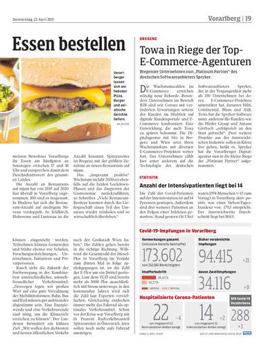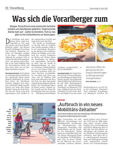 Burger, Pizza/Pasta und asiatische Gerichte werden am häufigsten geliefert. Vegetarische Küche holt auf – außer in Dornbirn. Viel zu tun gibt es für Lieferdienste an Sonntagen.