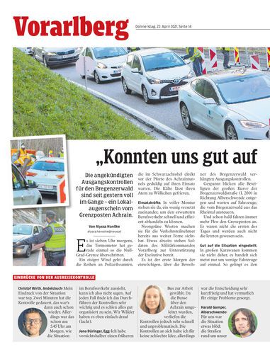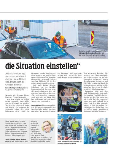 Die angekündigten Ausgangskontrollen für den Bregenzerwald sind seit gestern voll im Gange – ein Lokalaugenschein vom Grenzposten Achrain.