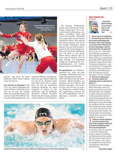 Caroline Pilhatsch weilt in Helsinki, das Südstadt-Team in der Türkei. Sonst ist die österreichische Spitze bei der Atus Graz Ströck Trophy dabei.
