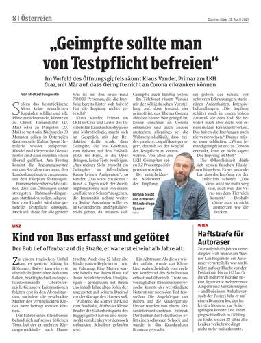 Im Vorfeld des Öffnungsgipfels räumt Klaus Vander, Primar am LKH Graz, mit Mär auf, dass Geimpfte nicht an Corona erkranken können.
