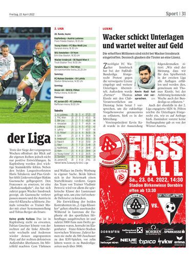 Austria Lustenau kämpft heute (18.10 Uhr) beim Kapfenberger SV um wichtige Punkte im Aufstiegskampf.