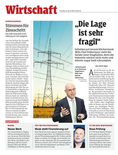 Inflation auf neuem Höchststand. Wifo-Chef Felbermayr sieht die Gefahr einer Stagflation, denn die Industrie wächst nicht mehr und könnte sogar bald schrumpfen.