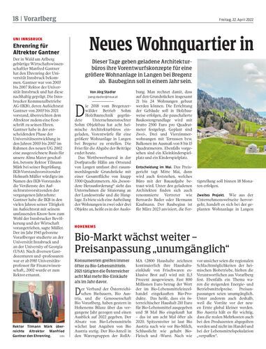 Dieser Tage geben geladene Architekturbüros ihre Vorentwurfskonzepte für eine größere Wohnanlage in Langen bei Bregenz ab. Baubeginn soll in einem Jahr sein.