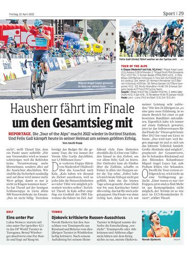 reportage. Die „Tour of the Alps“ macht 2022 wieder in Osttirol Station. Und Felix Gall kämpft heute in seiner Heimat um seinen größten Erfolg. Von Joschi Kopp