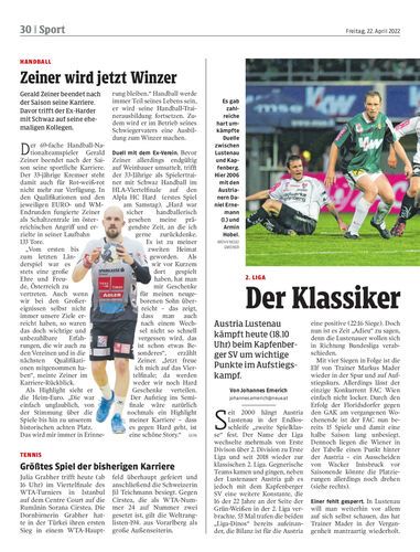 Gerald Zeiner beendet nach der Saison seine Karriere. Davor trifft der Ex-Harder mit Schwaz auf seine ehemaligen Kollegen.