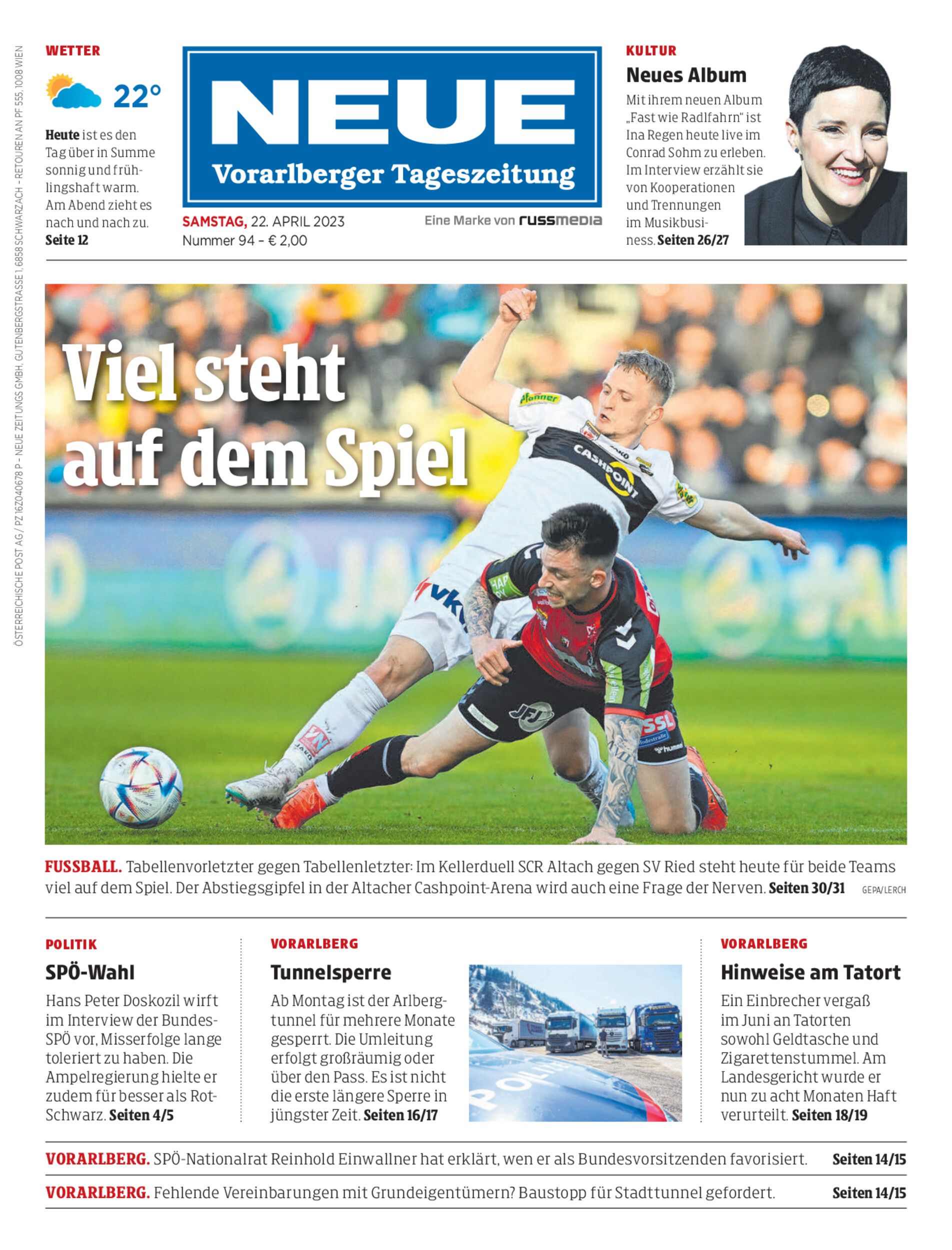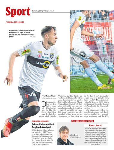 Im ersten von zwei Heimspielen innerhalb einer Woche trifft der SCR Altach heute Nachmittag auf Tabellenschlusslicht Ried.