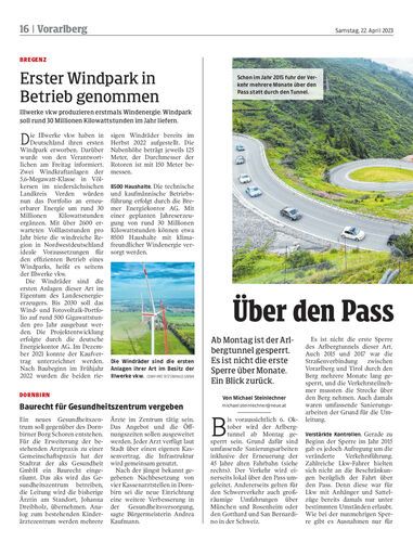 Illwerke vkw produzieren erstmals Windenergie. Windpark soll rund 30 Millionen Kilowattstunden im Jahr liefern.
