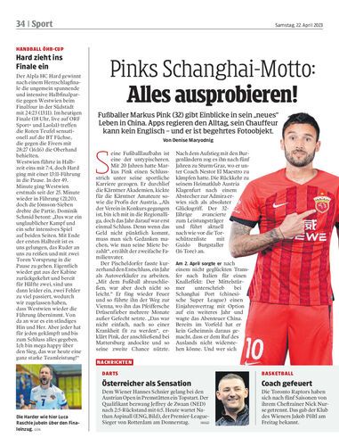 Fußballer Markus Pink (32) gibt Einblicke in sein „neues“ Leben in China. Apps regieren den Alltag, sein Chauffeur kann kein Englisch – und er ist begehrtes Fotoobjekt. Von Denise Maryodnig