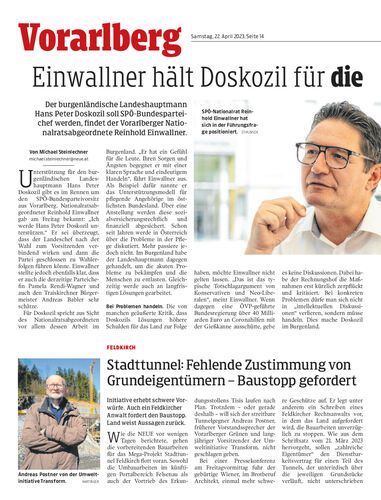 Der burgenländische Landeshauptmann Hans Peter Doskozil soll SPÖ-Bundesparteichef werden, findet der Vorarlberger Nationalratsabgeordnete Reinhold Einwallner.