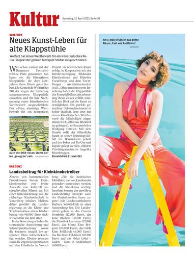 Wolfurt hat einen Wettbewerb für ein künstlerisches Re-Use-Projekt der grünen Festspiel-Stühle ausgeschrieben.