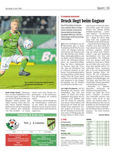 Der FC Dornbirn ist heute zum zweiten Mal in Folge in der Fremde im Einsatz. Dieses Mal bei Aufstiegskandidat BW Linz. Die Torhüterfrage wird kurzfristig entschieden.