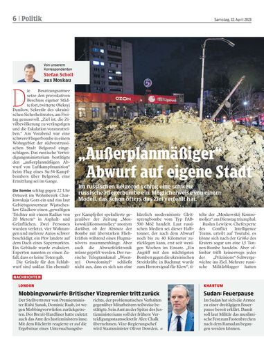 Im russischen Belgorod schlug eine schwere russische Fliegerbombe ein. Möglicherweise von einem Modell, das schon öfters das Ziel verfehlt hat.