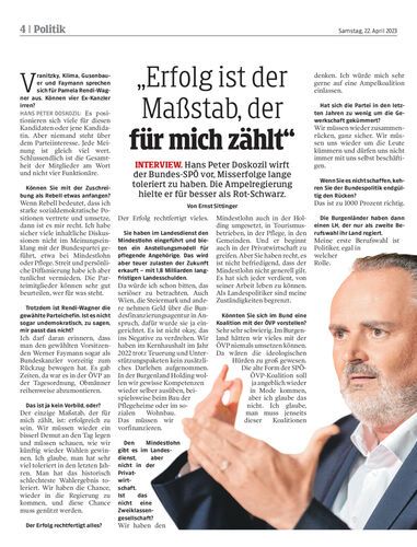 Hans Peter Doskozil wirft der Bundes-SPÖ vor, Misserfolge lange toleriert zu haben. Die Ampelregierung hielte er für besser als Rot-Schwarz. Von Ernst Sittinger