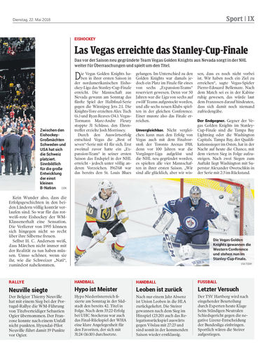 Das vor der Saison neu gegründete Team Vegas Golden Knights aus Nevada sorgt in der NHL weiter für Überraschungen und spielt um den Titel.