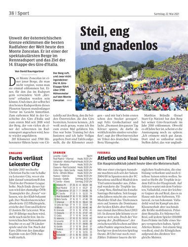 Unweit der österreichischen Grenze erklimmen die besten Radfahrer der Welt heute den Monte Zoncolan. Er ist einer der spektakulärsten Berge im Rennradsport und das Ziel der 14. Etappe des Giro d’Italia.