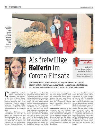 Janine Maurer ist ehrenamtlich für das Rote Kreuz im Einsatz. Derzeit hilft sie mehrmals in der Woche in der Corona-Teststation im Lustenauer Reichshofsaal und unterstützt bei Selbsttests.