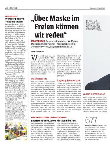 Livetalk. Wolfgang Mückstein war zu Gast im Kleine-TV. Der Gesundheitsminister stellte sich den Fragen unserer Leser zu Reisen in Zeiten von Corona, Impfterminen und Co. Von Martina Marx