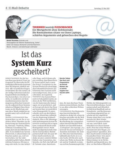 THURNHER kontr@ FLEISCHHACKER Ein Wortgefecht ohne Sichtkontakt. Die Kontrahenten sitzen vor ihren Laptops, schärfen Argumente und gehorchen drei Regeln: