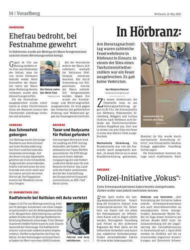 In Hohenems wurde am Montag ein Mann festgenommen und mit einem Betretungsverbot belegt.