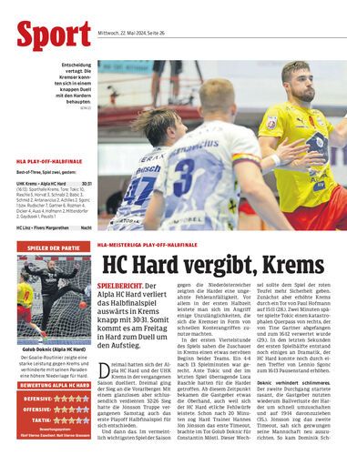Spielbericht. Der Alpla HC Hard verliert das Halbfinalspiel auswärts in Krems knapp mit 30:31. Somit kommt es am Freitag in Hard zum Duell um den Aufstieg.