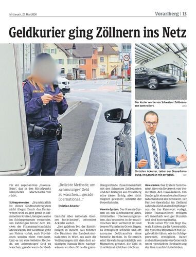 Christian Ackerler, Leiter der Steuerfahndung, gewährt auf Anfrage der NEUE Einblick in ein mysteriöses Geldwäschesystem – Fahrer mit 200.000 Euro Bargeld an Vorarlberger Grenze festgenommen.
