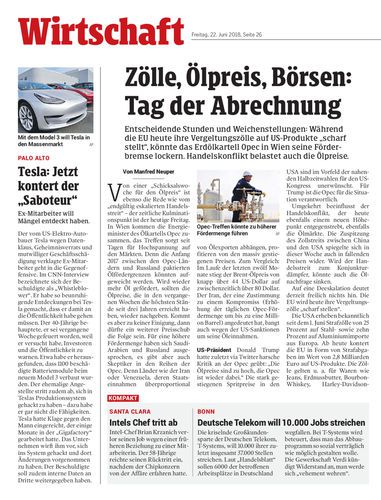 Entscheidende Stunden und Weichenstellungen: Während die EU heute ihre Vergeltungszölle auf US-Produkte „scharf stellt“, könnte das Erdölkartell Opec in Wien seine Förderbremse lockern. Handelskonflikt belastet auch die Ölpreise.