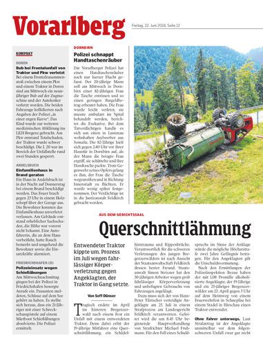 Entwendeter Traktor kippte um. Prozess im Juli wegen fahrlässiger Körperverletzung gegen Angeklagten, der Traktor in Gang setzte.