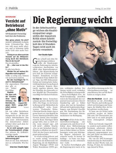 In der Arbeitszeitfrage wichen die Koalitionspartner angesichts der massiven Kritik einen Schritt zurück: Die Freiwilligkeit des 12-Stunden-Tages wird auch im Gesetz verankert.