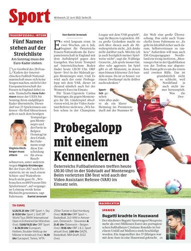 Österreichs Fußballerinnen treffen heute (20.30 Uhr) in der Südstadt auf Montenegro. Beim vorletzten EM-Test wird auch der Video Assistant Referee (VAR) im Einsatz sein.