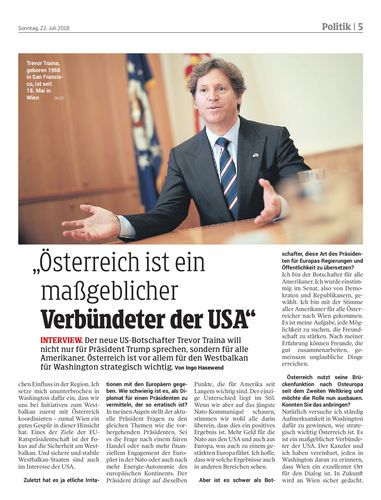Der neue US-Botschafter Trevor Traina will nicht nur für Präsident Trump sprechen, sondern für alle Amerikaner. Österreich ist vor allem für den Westbalkan für Washington strategisch wichtig. Von Ingo Hasewend