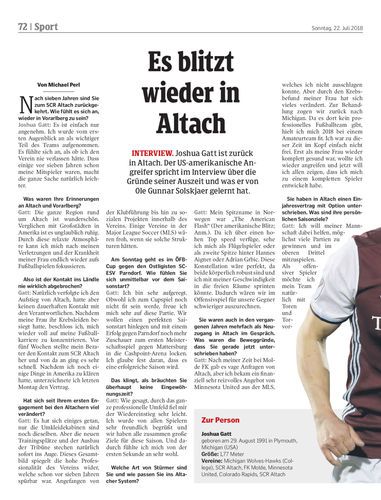Interview. Joshua Gatt ist zurück in Altach. Der US-amerikanische Angreifer spricht im Interview über die Gründe seiner Auszeit und was er von Ole Gunnar Solskjaer gelernt hat.