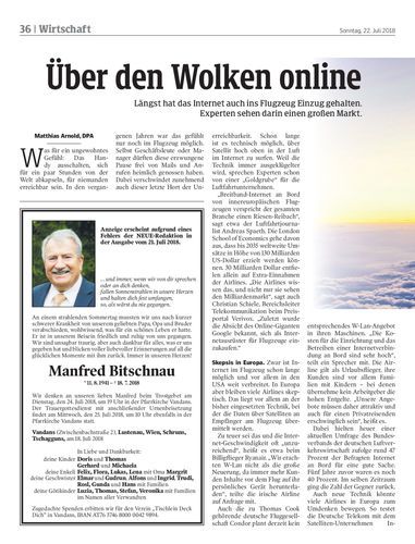 Längst hat das Internet auch ins Flugzeug Einzug gehalten. Experten sehen darin einen großen Markt.