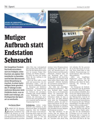 Der Gargellner Frederic Berthold entschloss sich im Frühjahr, seine Karriere als alpiner Skirennläufer zu beenden und bei den Skicrossern einen Neuanfang zu machen. In einer mehrteiligen Serie gewährt der 27-Jährige in den nächsten Monaten tiefe Einblicke darin, was es heißt und verlangt, als Profisportler die Sportart zu wechseln.