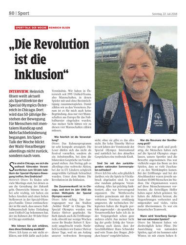 Interview. Heinrich Olsen weilt aktuell als Sportdirektor der Special Olympics Österreich in Chicago. Dort wird das 50-jährige Bestehen der Bewegung für Menschen mit mentalem Handicap und Mehrfachbehinderung begangen. Im Sport-Talk der Woche blickt der Wahl-Vorarlberger allerdings nicht zurück, sondern nach vorn.
