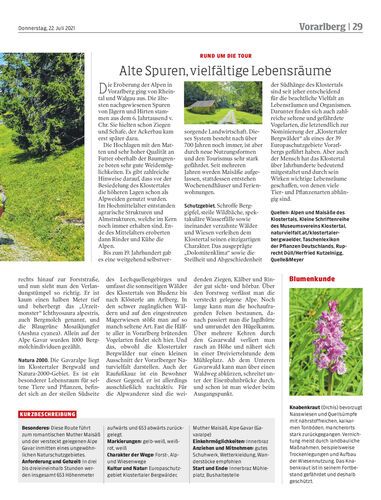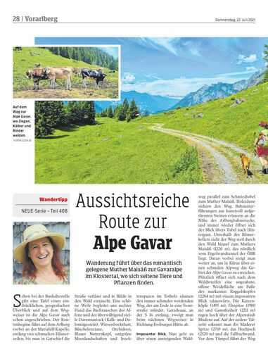 Wanderung führt über das romantisch gelegene Muther Maisäß zur Gavaralpe im Klostertal, wo sich seltene Tiere und Pflanzen finden.