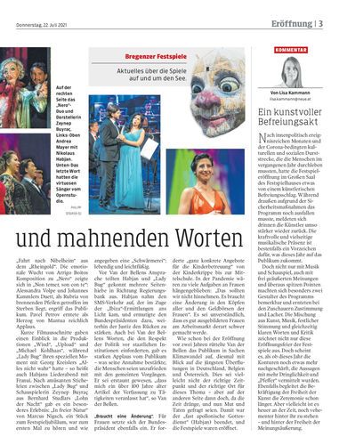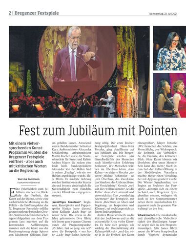 Mit einem vielversprechenden Kunst-Programm wurden die Bregenzer Festspiele eröffnet – aber auch mit kritischen Worten an die Regierung.