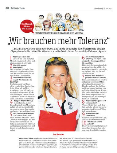 Tanja Frank war Teil des Segel-Duos, das in Rio de Janeiro 2016 Österreichs einzige Olympiamedaille holte. Die Wienerin wird in Tokio daher Österreichs Fahnenträgerin.