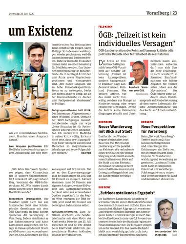 ÖGB-Landesvorsitzender Reinhard Stemmer kritisiert die politische Debatte über Teilzeitarbeit als realitätsfern.
