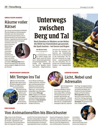 Nach Dornbirn ist Bludenz an der Reihe: Die NEUE hat Freizeitideen gesammelt, die Spaß machen – bei Sonne und Regen.