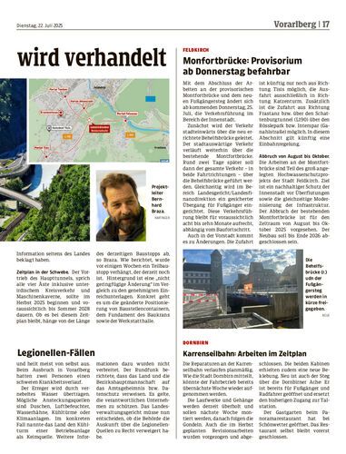 Monfortbrücke: Provisorium ab Donnerstag befahrbar