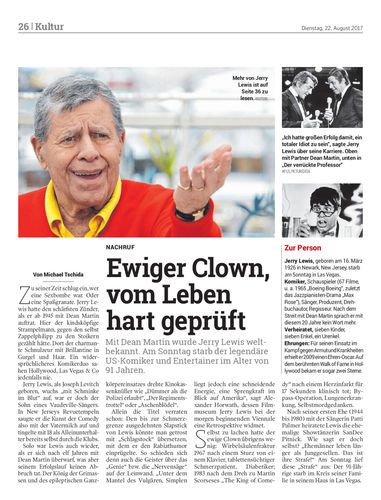 Mit Dean Martin wurde Jerry Lewis weltbekannt. Gestern starb der legendäre US-Komiker und Entertainer im Alter von 91 Jahren.