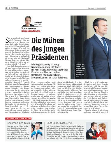 Nach knapp über 100 Tagen im Amt hat in Frankreich die Begeisterung über Emmanuel Macron nachgelassen. Morgen wird er in Salzburg erwartet.
