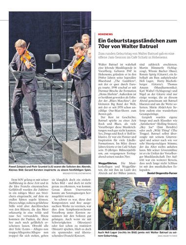 Zum runden Geburtstag von Walter Batruel gab es eine offene Jam-Session im Café Schatz in Hohenems.