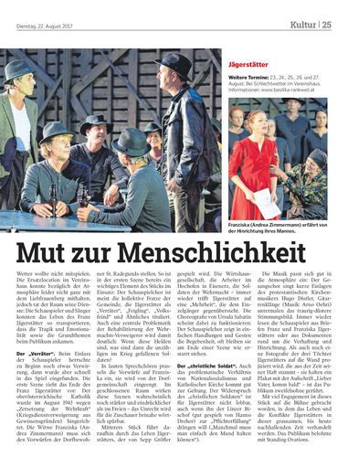 Brigitta Soraperras Inszenierung des „Jägerstätter“ feierte am Wochenende Premiere.