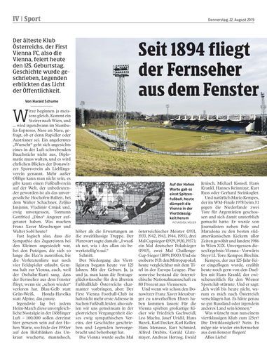 Der älteste Klub Österreichs, der First Vienna FC, also die Vienna, feiert heute den 125. Geburtstag. Geschichte wurde geschrieben, Legenden erblickten das Licht der Öffentlichkeit.
