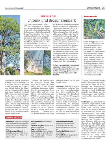 Die Geschichtenerzählerin Hertha Glück wanderte ab Marul zum Fürkele. Anschließend hinab zur Faludriga Alpe und über den Walderlebnispfad wieder zurück.