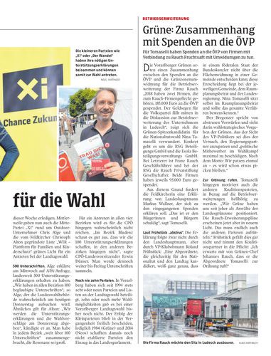 Für Tomaselli haben Spenden an die ÖVP von Firmen mit Verbindung zu Rauch Fruchtsaft mit Umwidumgen zu tun.