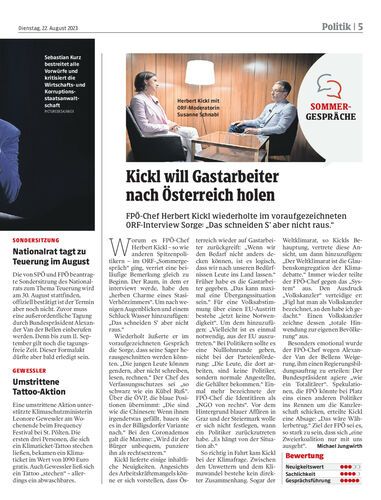 FPÖ-Chef Kickl wiederholte im voraufgezeichneten ORF-Interview Sorge: „Das schneiden’S aber bitte nicht raus.“